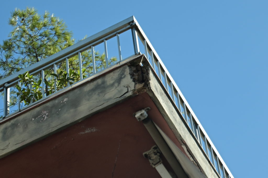 The minor was injured when a section of a balcony fell on her head while she was waiting with her mother for the bus on Heroon Polytechniou Street.