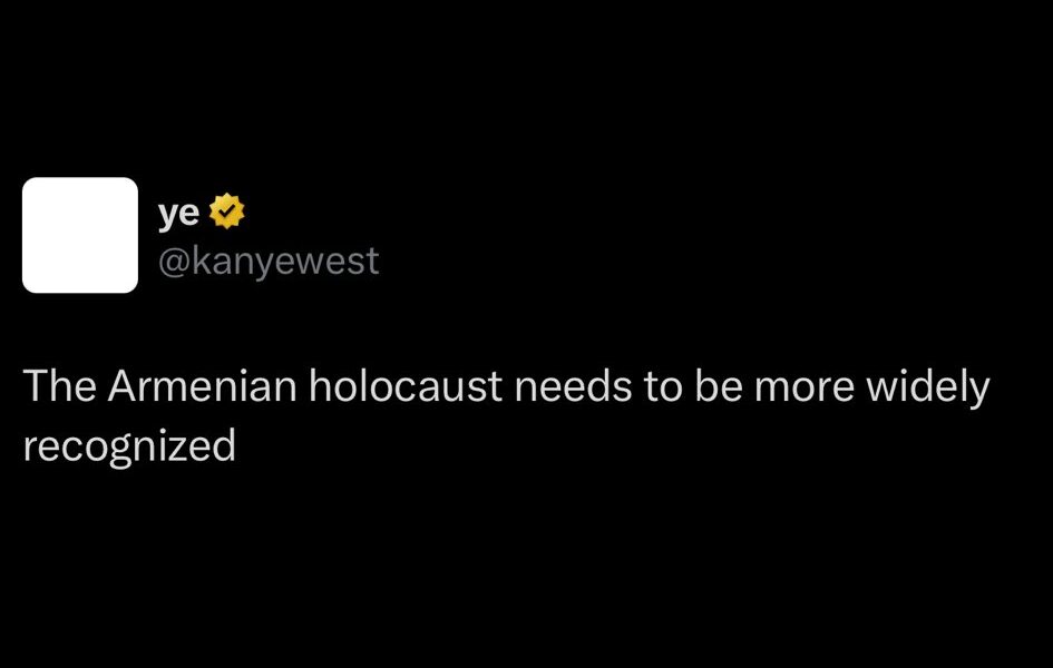 In a recent post on X, Kanye West or as he is known as Ye stated that the Armenian genocide, often referred to as the Armenian Holocaust, needs to be more widely recognized.