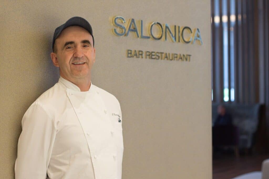 As Executive Chef at Salonika Restaurant, housed in Thessaloniki’s iconic Makedonia Palace Hotel, he crafts dishes that honour the traditions of Macedonia through a modern, elegant lens.