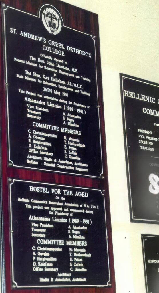 Furthermore, he backed Villa Hellas, now known as Hellenic Community Aged Care, Construction. This $2 million aged care hostel opened in 1992. It adjoins the school. This facility was not only supported by Athanasios. Still, it was part of his overall vision for the Dianella land, a place where the young and the elderly can integrate, as that was his vision- connection through the school and the aged care. The first stage was built, completed, and occupied during his presidency at the Hellenic Community of WA.