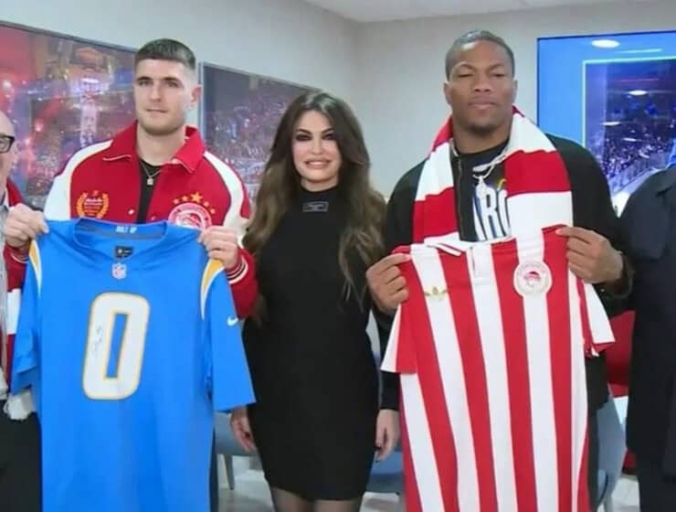 US Ambassador to Greece Kimberly Guilfoyle and NFL player DeSean Henley attended the Olympiacos–Panathinaikos derby…