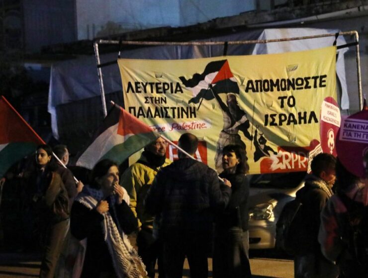 A crowd of protesters gathered outside Piraeus 260 on Monday evening, calling for Israel’s exclusion…