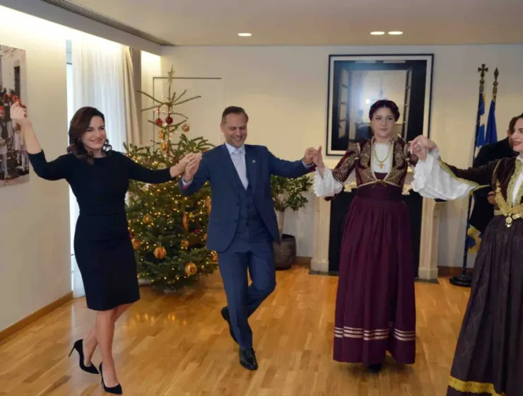 The historic Club of Vraka-Wearers of Crete brought festive joy to Greece’s Ministry of Tourism on Christmas Eve, singing traditional Cretan Christmas carols and dancing with Minister Olga Kefalogianni, who proudly joined in celebrating the island’s rich heritage.