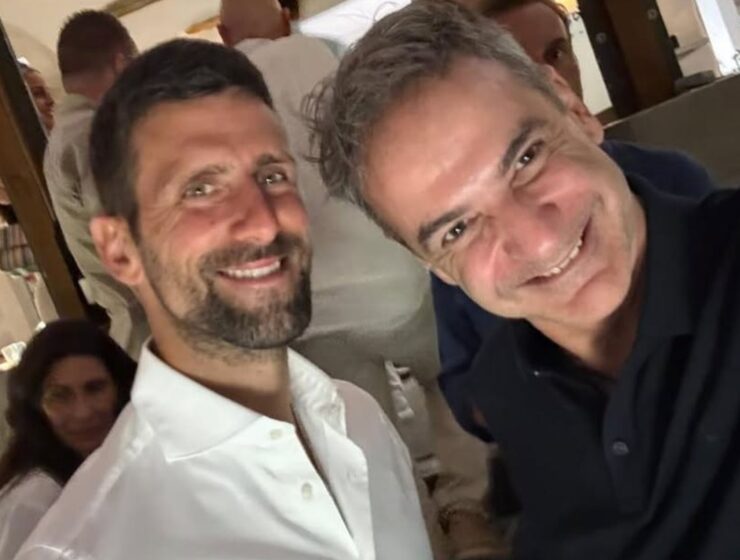 Greek PM Kyriakos Mitsotakis met tennis legend Novak Djokovic in Tinos for the second time this summer. The two shared a relaxed dinner, with Mitsotakis posting a smiling photo on Instagram.