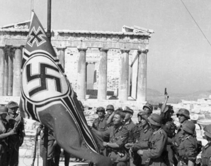 On April 27, 1941, German forces entered Athens, raising the Nazi swastika atop the Acropolis after lowering the Greek flag, marking a dark chapter in Greek history. Following General Tsolakoglou’s controversial surrender, the Greek front collapsed, King George II and his government fled to Crete, and British forces retreated.