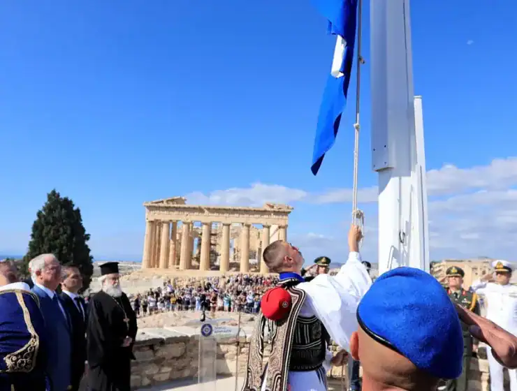 A solemn flag-raising ceremony was held at the Acropolis to commemorate 81 years since Athens was liberated from Nazi occupation, attended by President Konstantinos Tasoulas, Mayor Haris Doukas, and representatives of Greece’s Armed Forces and Parliament.