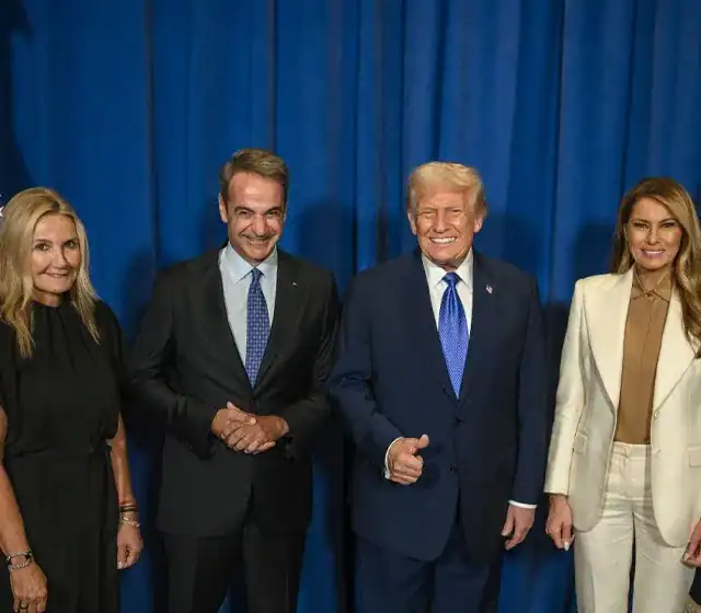 Greek Prime Minister Kyriakos Mitsotakis and his wife, Mareva Grabowski-Mitsotakis, attended a formal dinner hosted by U.S. President Donald Trump and First Lady Melania Trump in New York during the 80th UN General Assembly. The event marked a continuation of diplomatic ties, with the leaders having previously met in 2020.