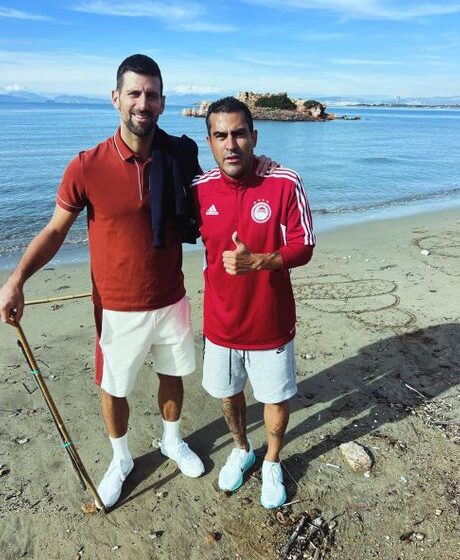 Former Olympiacos striker Nery Castillo, now a fishing gear shop owner in Athens, approached Novak Djokovic for a photo on a local beach, highlighting the tennis star’s off-season relaxation in hisadoptive home city.